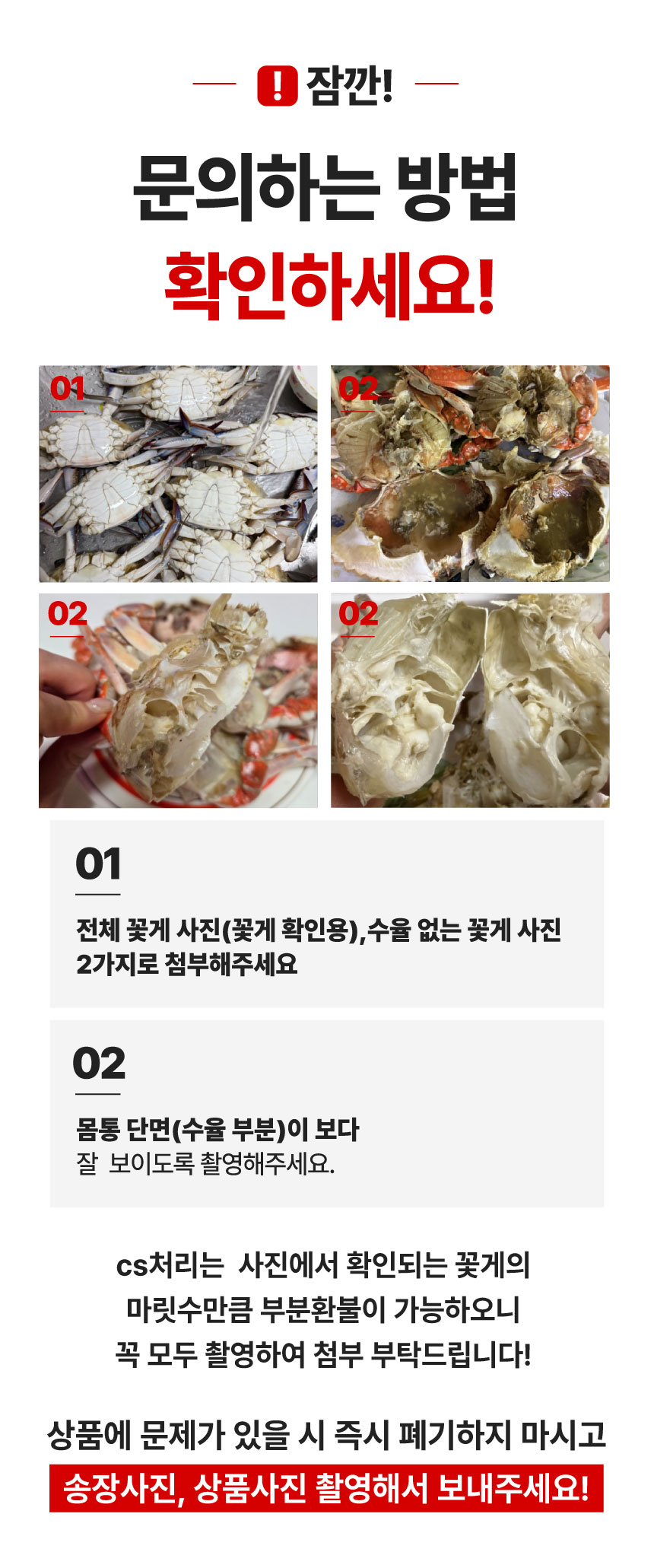 · 상품 불량 사유와 사진을 남겨 주시면 빠른 처리가 가능합니다.